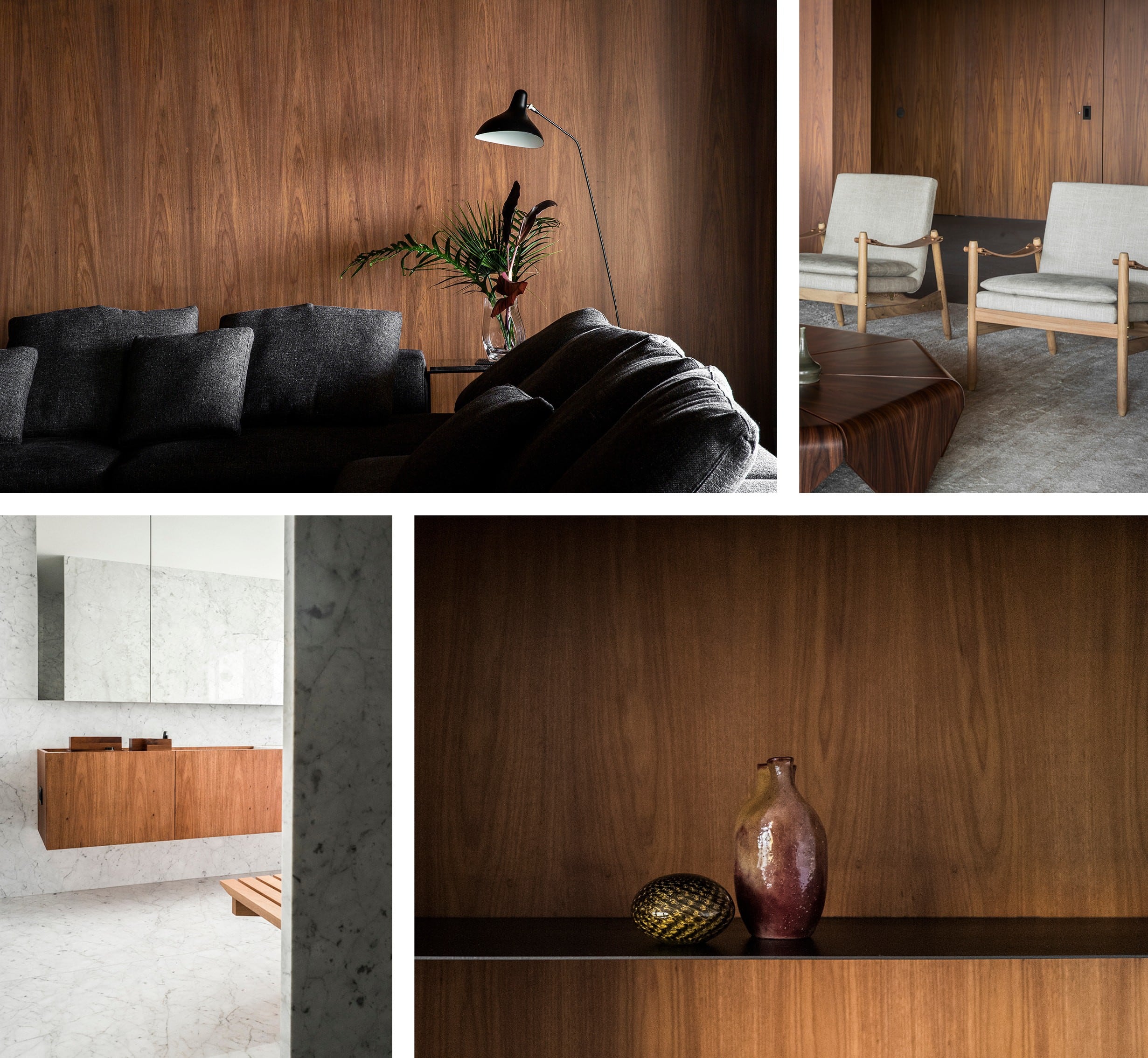 The apartment in Saõ Paulo, which has a habitable surface of 710 square metres, is an interplay between cold and warm materials. Wood and natural stone balance each other. Take a look at the minimalist bathroom, for example. The bathroom is made entirely of marble that gets interrupted by a simplistic wooden washbasin.