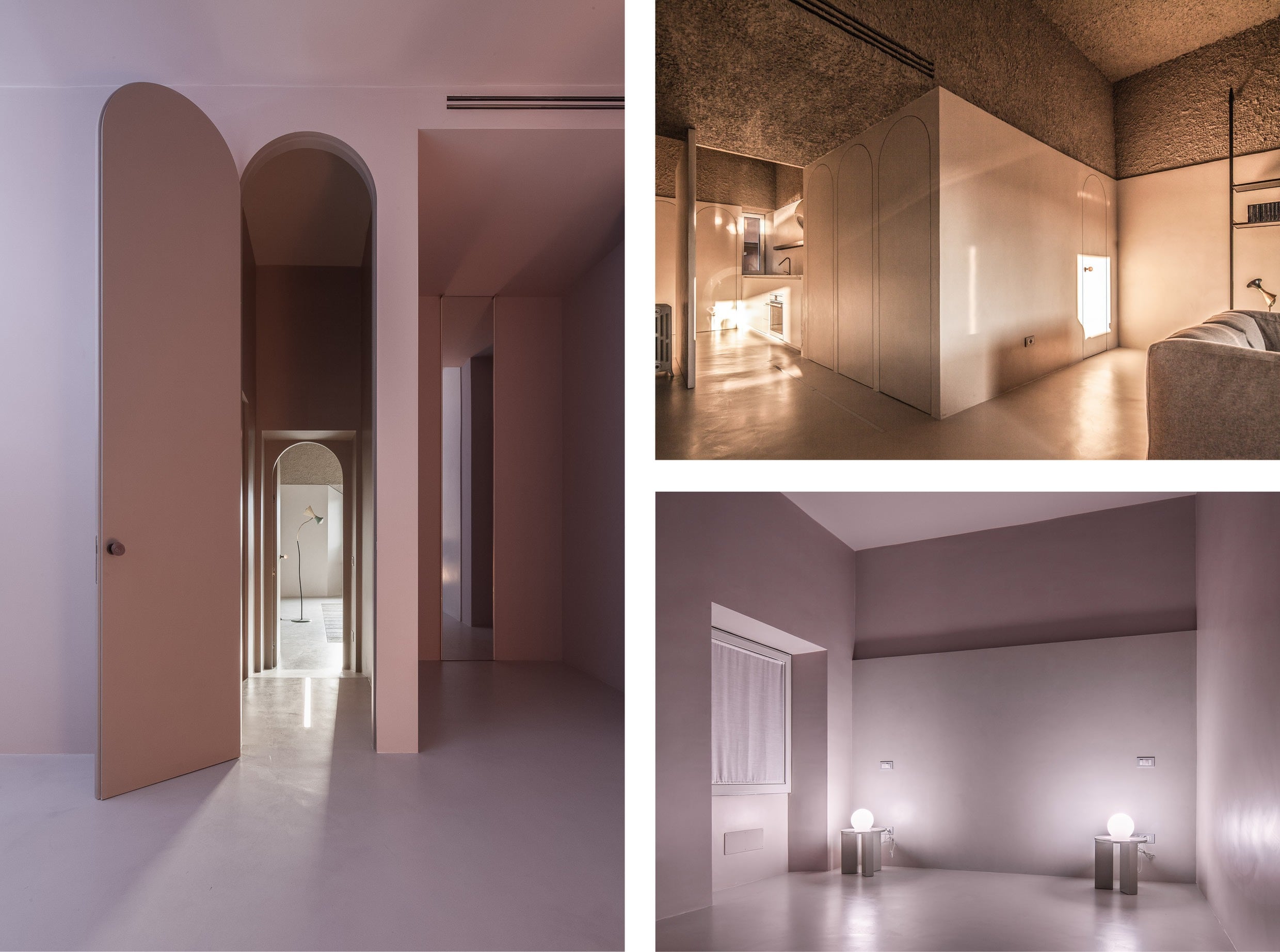 De gebogen deuren verwijzen naar 14de-eeuwse Italiaanse schilderijen en verbergen andere kamers en kasten. Ook de keuken is afgeschermd van de centrale ruimte met een draaiend paneel. De ruimtes kunnen dus op ontelbare manieren geïnterpreteerd worden en spreken tot de verbeelding.