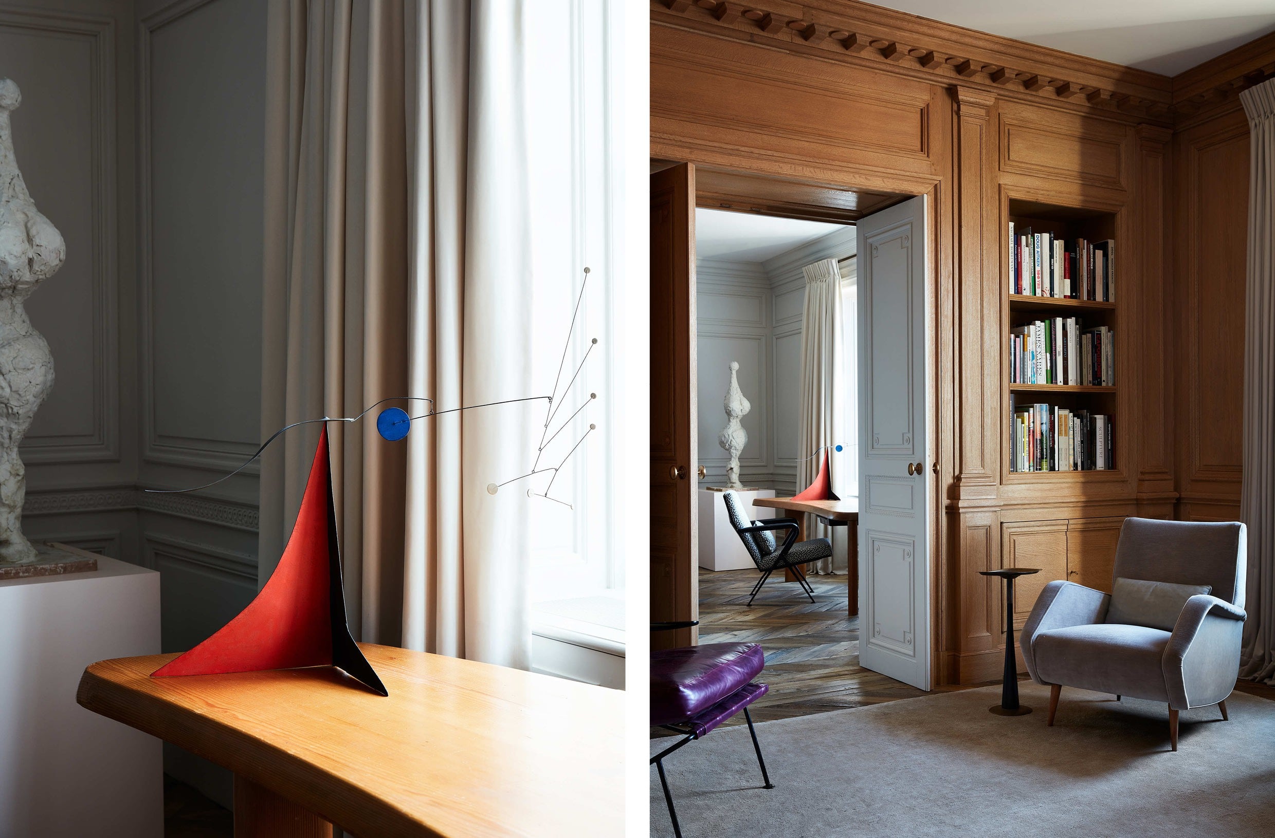 We tonen hier met veel plezier de beelden van een recent ingericht appartement in Manhattan. De unieke parketvloer, de opvallende, maar stijlvolle roze sofa, het indrukwekkende marmer in de badkamer en keuken en de doordacht geplaatste kunst- en designobjecten zorgen er allemaal voor dat deze woonst een zeer high-end en exclusief oogt. Zoals we wel vaker zien in projecten van Atelier AM - maar zonder dat het een kopie is of te veel op elkaar lijkt - gaan klassieke elementen (zie hier de prachtige sierlijsten en muurreliëfs) en hedendaagse ingrepen en accenten hand in hand.